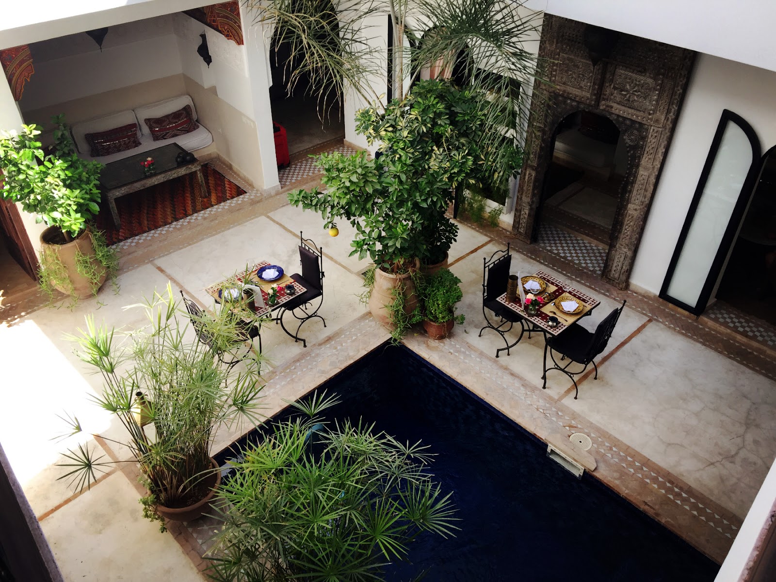 這是中庭,跟白色那棟差、很、多,摩洛哥的房間室內燈光超昏暗,都快瞎了,由於失望透頂,沒拍房間照片。我應該當場跟他抱怨而不是回國後才在訂房網給負評。